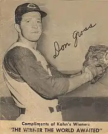 Donald John Gross (June 30, 1931 – August 10, 2017) was an American baseball player whose 13-year professional career (1950–52; 1954–63) included all or parts of six seasons of Major League Baseball with the Cincinnati Redlegs (1955–57) and Pittsburgh Pirates (1958–60). A left-handed pitcher, Gross stood 5 feet 11 inches (1.80 m) tall and weighed 186 pounds (84 kg). He attended Michigan State University.