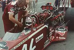 After trouble getting the "vaunted" Gilmore Engineering-chassied Donovan Engineering Special dragster sorted out, Tom McEwen quit, and was replaced by Prudhomme, then owner-driver in the B&M Tork Master-sponsored car.[4]