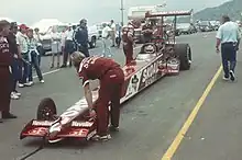 In 1965, Prudhomme faced Hot Wheels teammate McEwen at the Hot Rod Magazine Championship Drag Races, held at Riverside, "one of the most significant drag racing events" of that era;[5] ultimately, Top Fuel Eliminator (TFE) went to Jim Warren.[6]