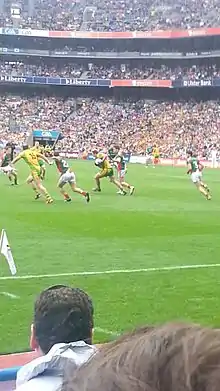 The team is a major force in the sport.[3] Currently regarded as one of the best teams in the sport,[4] Karl Lacey won the 2012 All Stars Footballer of the Year, Michael Murphy won the 2009 All Stars Young Footballer of the Year and Ryan McHugh won the 2014 All Stars Young Footballer of the Year, while numerous other players have been selected on All Star teams. Donegal players comprised most of the 2012 All Stars Team of the Year, as well as all three nominations for Footballer of the Year, ultimately won by Lacey.[5] In addition, having been invited to assist the Celtic association football club in Scotland, Donegal manager Jim McGuinness became the first Gaelic football inter-county manager to have been offered a role at a professional sports team abroad.[6] McGuinness's services have also been sought by Premier League clubs.[7] In terms of style, "the system" deployed by McGuinness's team was likened to that of the Spanish association football team FC Barcelona.[8][9]