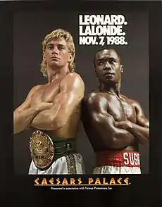 In August 1988, a fight between reigning WBC light heavyweight champion Donny Lalonde and 3-division champion "Sugar" Ray Leonard was agreed upon. The fight was a rarity in boxing as two titles from different divisions would be on the line; Lalonde's WBC light heavyweight title and the newly created WBC super middleweight title. As such, the two fighters would fight at the 168-pound super middleweight limit.[1] Leonard was ending his third retirement, which he had entered the previous year after defeating Marvin Hagler by split decision.[2] Leonard and Lalonde agreed to split a $20 million purse with Leonard getting $15 million and Lalonde earning a career-high $5 million. Rather than have an outside promoter, Leonard and Lalonde's teams agreed to co-promote the fight in a joint partnership with the Coors Brewing Company sponsoring the bout. However, there was some controversy prior to the fight when Lalonde refused to wear gear bearing the Coors logo nor participate in promotion for the company. Coors had guaranteed an additional $1 million in each fighters purse and Leonard's lawyer and adviser Mike Trainer threatened to withhold the Coors money from Lalonde, stating "Their money is going to go to a charity of Donny's choice. He's not getting it." He also called the joint-partnership a "nightmare" due in part to problems with Lalonde's manager Dave Wolf.[3]