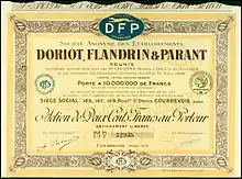 Share of the SA des Etablissements Doriot, Flandrin & Parant, issued March 1918