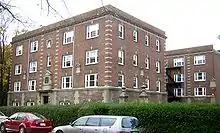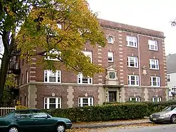 The Dorothy Q Apartments is an historic apartment house at 36 Butler Road in Quincy, Massachusetts. It is a five-story brick Colonial Revival structure, consisting of two rectangular blocks joined at one end into a U shape. Its trim elements are in limestone, and include corner quoining, keystones over the windows, and a modillioned cornice. The complex was designed by Graves and Epps and built in 1929, during a period of rapid growth in the city. It is named for the Dorothy Quincy Homestead, which is next door.[2]
