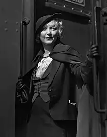 Stickney made her Broadway debut in 1926 in The Squall and had a string of hits, frequently playing eccentric characters.[3] She was Liz, the mad scrubwoman, in the original nonmusical version of Chicago, and Mollie Molloy, who dives out of the pressroom window, in The Front Page. With increasingly important roles, she moved on to Philip Goes Forth,[4] Another Language, On Borrowed Time, The Small Hours, To Be Continued[5] and The Honeys. In 1940, Stickney received the Barter Theatre Award for "outstanding performance for an American player"[6] for her role as Vinnie in Life with Father, which had been written by her husband, Lindsay, who also co-starred. The award was presented to her by Eleanor Roosevelt.[7]