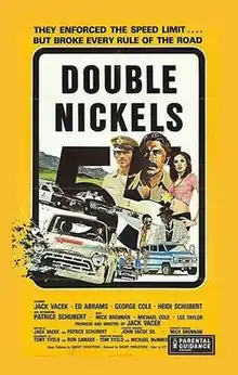 Double Nickels is a 1977 car chase action-comedy starring Jack Vacek, Patrice Schubert, Ed Abrams, George Cole, Michael "Mick" Brennan, and Tim "Tex" Taylor. Vacek also wrote, produced, and directed the film.[1][2]