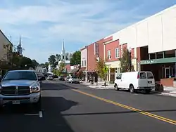 Christiansburg Downtown Historic District is a national historic district located at Christiansburg, Montgomery County, Virginia. The district encompasses 32 contributing buildings, 1 contributing site, and 2 contributing objects in the central business district of Christiansburg. The district includes a variety of one-, two-, or three-story commercial or office buildings built primarily from the 1915-1950 period. The courthouse square is the cultural and historic center of the district. Notable buildings include the Taylor Office Building (c. 1870), Bank of Christiansburg (1963), Dr. George Anderson House (c. 1800, c. 1890), Zirkle Building (1910), Cromer Furniture Building (c. 1920), Presbyterian Manse (1876), Barnes-Surface Motor Co. (1911, c. 1920), Virginia Inn Hotel (c. 1915, c. 1920), and Leggett's Department Store (1958). The contributing objects are the Confederate Memorial (1883) and War Memorial (1953). Located in the district and separately listed are Christiansburg Presbyterian Church, U.S. Post Office, and Phlegar Building.[3]