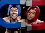 Translating to English as After School Electromagnetic Wave Club, this sketch features Kōji Imada and Kōji Higashi as "North Pole" and "South Pole," wearing nothing but helmets, gloves, and revealing thongs and holding giant U-shaped magnets. They act like characters in an after school special, teaching the viewers business world manners. The magnets, as they proclaim, are used to "draw out evil." Due to their skimpy attire, a mosaic is often applied over their groins whenever there is wardrobe malfunction.