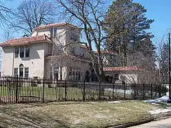 Dr. Steven's House at 21 S. Riverview Heights in Sioux Falls, South Dakota, was built in 1926 for local physician George Stevens and his wife Nelle. It is located directly facing the Sioux Falls Veteran's Hospital.[2]