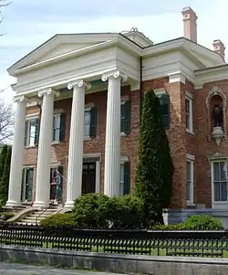 The Willard-Case Mansion is a monumental Greek Revival style brick mansion, originally built in 1836-1843 by John Seymour. It had Classical Revival wings added in the late 19th century. It is a two-story, five-bay, center hall building, resting on a stone foundation.