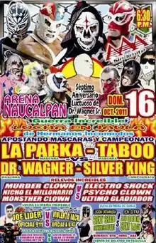 The Dr. Wagner 50th Anniversary Show was a professional wrestling event that took place on October 16, 2011, at Arena Naucalpan in Naucalpan, State of Mexico. As the name indicates, the event commemorated the 50th anniversary of the debut of Manuel González Rivera, better known under the ring name Dr. Wagner, as well as the 7th anniversary of his death on September 13, 2004. The show was produced as a joint effort between International Wrestling Revolution Group (IWRG) and Promocion Wagner, owned and operated by González's son who wrestles as Dr. Wagner, Jr. The show included both sons of Dr. Wagner competing in the main event as Dr. Wagner, Jr., and Silver King competed in a match where the IWRG Intercontinental Heavyweight Championship was on the line as well as the masks of Dr. Wagner, Jr., and the remaining competitors, La Parka and Taboo.