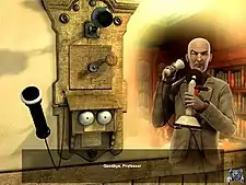 When the player clicks on a person to whom they wish to speak, a list of conversation topics appear on screen. When the player picks up an item, it is automatically put into an auto-holder rather than the main inventory, and must be transferred manually from the auto-holder to the inventory screen. This allows the player to sort the inventory in any way they wish.[13] A major part of the gameplay is examining documents, which have a separate section in the inventory screen, presenting the player with numerous options. For example, the player can organise the documents in two ways; by title or by the order in which they were found. Players can also "flag" documents so as to relate them to particular clues, and can then examine all documents related to any one particular clue together, without having to navigate through non-related documents. The documents screen also includes a "compare" view for examining different copies of the same pictures to find differences between them, and all documents can be examined in more detail with a magnifying glass. The game also includes complete copies of the Bible and Bram Stoker's Dracula, and each text has a "random page" option, which opens the book at a random passage. If done at certain times in the game, the random option can present clues to the player as to how to proceed (when this is the case, the "random page" option flashes).[14]