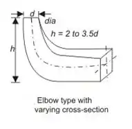 3. Elbow with varying cross section – It is similar to the Bent Draft tube except the bent part is of varying cross section with rectangular outlet.the horizontal portion of draft tube is generally inclined upwards to prevent entry of air from the exit end.[2]
