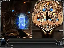 In addition to give players time to really explore every aspect of the scenes, KatGames add a device called the Nexus gateway (a series of gateways that allow you to travel to different interconnected locations after you figure out how to unlock them) with hoping to make the game non-linear which allows players to move freely throughout the game world.[10] Instead of being confined to a linear path, The Chosen Child opens the door for wider exploration, creating the epic feel the series needed to move to the next level. As a result, now players can travel back and forth all the scenes by pulling levers to rotate a massive set of gears and portals in the Nexus gateway, yet this unique feature only appeared in The Chosen Child.[9] For the second time in the Dream Chronicles series, players can enjoy the experiences of solving maze puzzles. The Chosen Child contains two underwater labyrinths, one in the 19th scene and the other one in the 23rd scene. However, they are criticized for their highly difficult level preventing some players from completing the whole game.[6] The game has only one weak spot: hint system. The crystal ball is of little help. It rarely tells the exact solution, but instead gives players slight hints. Like in the two previous games of the series, the screen sparkles at times hinting the place where players are to pick up or apply something, but that rarely happens. If players get stuck, they have to keep looking until finding the right item.[6]