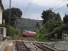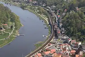 The Děčín–Dresden railway, also called the Elbe Valley Railway (German: Elbtalbahn) is an electrified main line in Saxony and the Czech Republic. Formerly called the Saxon-Bohemian State Railway (Sächsisch-Böhmische Staatseisenbahn), the line is part of the Dresden to Prague route and is one of Europe's most important trunk routes (Magistralen). It runs along the Elbe Valley from Děčín via Bad Schandau and Pirna to Dresden. The first section of the line was opened in 1848 and is one of the oldest lines in Germany.