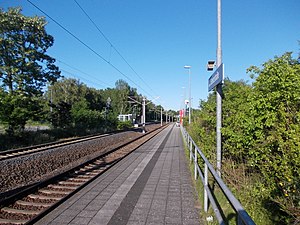 Dresden Grenzstraße station is a railway station in Dresden-Klotzsche, Germany. The station is located on the Dresden-Klotzsche–Dresden Flughafen railway. The train services are operated by Deutsche Bahn, as part of the Dresden S-Bahn.