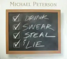 "Drink, Swear, Steal & Lie" is a debut song co-written and recorded by American country music artist Michael Peterson for his first album Michael Peterson. It was released in May 1997 as his debut single, and the first single and reached number 3 on the Billboard Hot Country Singles & Tracks chart in August 1997.[2] The song was written by Peterson and Paula Carpenter.