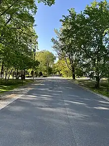 The West Side Trail crosses the road near its intersection with Gilman Road.