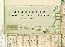 The track was an irregular oval with a distance of one mile, and was described as "the fastest mile track in the United States."[2] It was located on the north-west corner of Driving Park Avenue and Dewey Avenue, then called The Boulevard, in Rochester.