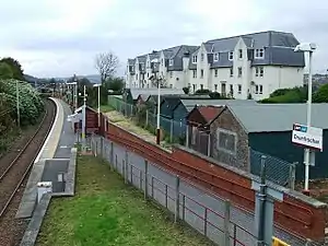 Drumfrochar railway station is a railway station located in a residential district in the south-western part of Greenock, Scotland. The station is managed by ScotRail and is on the Inverclyde Line, 23 miles (37 km) west of Glasgow Central.