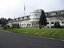 The building was designed by Carruthers May[1] and built in the art deco style as a traditional roadhouse in about 1930.[2] It was requisitioned to serve as the headquarters of No. 14 Group RAF in June 1940 during the Second World War.[3][4] The headquarters moved later to a permanent location at Raigmore House in 1941[5] and the building reverted to hotel use and by the 1970s was trading as the "Royal Stuart Motor Hotel".[6] More recently known as the "Drumossie Hotel", it was operated by Shearings in the 1990s[7] but has since been acquired by Macdonald Hotels.[8]