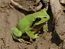 Dryophytes flaviventris, also known as the yellow-bellied tree frog, is a species of Ameroasian tree frog native to the central lowlands of South Korea, where it is known to occur in Buyeo, Nonsan and Iksan.[1][2] It was described in 2020 after research showed it to have genetic and morphological differences compared to Dryophytes immaculatus and Dryophytes suweonensis. The yellow-bellied tree frog is geographically separated from D. suweonensis by the Chilgap mountain range, and from other Dryophytes species (including D. immaculatus) by the Yellow Sea. The yellow bellied tree frog is estimated to have split off from D. suweonensis approximately 0.97 million years ago.[1]