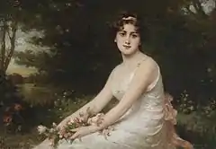 Junge Dame mit Rosen am Seeufer, Nathanael Sichel