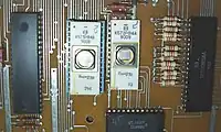 CPU (MME 80A) and ROM (2× К573РФ4А, the two white chips in the middle)