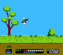 After every second round, a bonus stage has ducks flying out of the grass with the hunting dog occasionally jumping into the line of fire as a distraction. If shot, the dog scolds the player and the bonus stage ends. According to Nintendo of America employee Jerry Momoda, the dog was made impossible to shoot on console releases to make the game more family friendly.[16]: 45–46