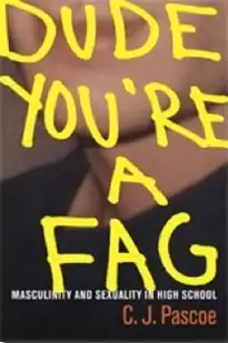Dude, You're a Fag: Masculinity and Sexuality in High School is a 2007 book by the sociologist C. J. Pascoe. Through ethnographic research, Pascoe examines masculinity in high schools. Pascoe's work proposes that masculinity is defined primarily through dominance and control. Further, masculinity is established by high school boys through their use of the fag (faggot) epithet. This book explores masculinity as enacted by male- and female-bodied students, the consequences of a strict gender system, heteronormativity within the school system, racialized masculine ideals, and acts of resistance to the gendered social order. Pascoe conducted fieldwork for a year and a half at "River High School", conducted formal interviews with fifty students, and informal interviews with many other students, administrators and faculty members.[1][2][3]