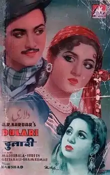 Dulari is a 1949 Indian Hindi-language romantic musical film directed by A.R. Kardar. The film stars Madhubala, Geeta Bali and Suresh, and its music was composed by Naushad. Dulari revolved around Prem (Suresh), a rich man who falls in love with the eponymous gypsy girl (Madhubala).[2]