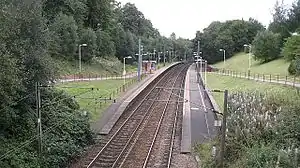 Dumbreck railway station is a railway station in Dumbreck, a district of Glasgow, Scotland. The station is managed by ScotRail and lies on the Paisley Canal Line, 1¾ miles (3 km) west of Glasgow Central, close to the M77 motorway. It is accessed from the Nithsdale Road at the bridge over the railway. Dumbreck railway station is also the closest station for the Bellahouston Park.