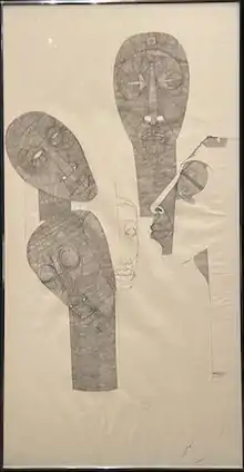 Zwelidumile Geelboi Mgxaji Mhlaba "Dumile" Feni (May 21, 1942 – 1991) was a South African contemporary visual artist known for Katlego Lhuzwayoboth his drawings and paintings that included sculptural elements as well as sculptures, which often depicted the struggle against Apartheid in South Africa.[1] Feni lived in exile and extreme poverty for most of his art career.