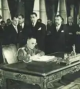 Gen. Dumitru Dămăceanu signing the Paris Peace Treaties, 1947 February 10