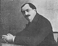 The coronation of Karnabatt's work as a poet and publicist came in December 1912, when he was elected one of two Secretaries of the Romanian Writers' Society (SSR).[50] Karnabatt was also present at the establishment of a journalists' trade union, the General Association of the Press, and stood on its steering committee, with Streitman, I. Hussar, Constantin Bacalbașa, Barbu Brănișteanu, Constantin Costa-Foru, Scarlat Lahovary, and Constantin Mille (January 1913).[51] Still, according to Boia, Karnabatt was exceptionally active, but "truly insignificant" as a writer.[52] Mitchievici describes Karnabatt as the author of "unjustly forgotten" Decadent poetry. A "competent", if casual, art critic,[24] Karnabatt supposedly had a more lasting impact on the "mundane and modern" sphere of urban folklore.[53]
