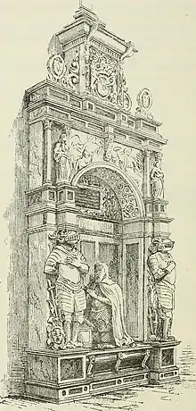 Dunbar Collegiate Church, unlike many other chapels, churches and monasteries in the area, was spared from the over-zealous exploits of the people as they rejoiced in the popular fury, laying waste and burning anything associated with old faith. The old church became, once again, the parish church, this time of the reformed faith. Much repair and renewal work had been carried out over the years, the building looked like a hybrid of Saxon, Gothic and Norman architecture. In 1779 the church was almost totally rebuilt. Then in 1819–1821 a new church was built, and opened on 20 April 1821 with the Reverend John Jaffray the first minister at the new building. There is a magnificent monument in the church to a tireless servant of James VI and I, George Hume, 1st Earl of Dunbar (1556-1611), High Treasurer of Scotland and Chancellor of the Exchequer of England.[5]