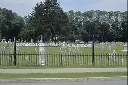 Dunning Street Cemetery is a historic rural cemetery located at Malta, Saratoga County, New York. The cemetery was established about 1775, and incorporated by the Dunning Street Cemetery Association in 1908. It is the final resting place of many important early Malta residents, including veterans of American Revolutionary War and includes a number of notable examples of 19th century local funerary art. It remains an active burial ground.[2]