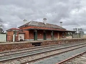 Dunolly is a closed railway station on the Mildura line in the town of Dunolly, Victoria, Australia. The station was one of 35 closed to passenger traffic on 4 October 1981 as part of the New Deal timetable for country passengers.[1] Today it is the junction for the lines towards Inglewood, Kulwin, and Robinvale. It also contains grain silos.