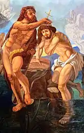 Fresco by Gino Colapietro (1997) in the counterfaçade of the Baptism in the Jordan