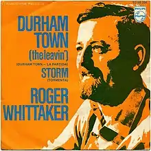 "Durham Town (The Leavin')" is a song, written and sung by Roger Whittaker, released as a single in 1969. It spent 18 weeks on the UK Singles Chart, peaking at No. 12.[1][2] In 1976, the song reached No. 8 on Canada's RPM "Pop Music Playlist",[3] while reaching No. 23 on Billboard's Easy Listening chart.[4]
