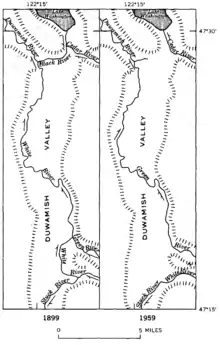 - ↑ "The Green-Duwamish: A River System Re-Plumbed", The Green-Duwamish River: Connecting people with a diverse environment. Duwamish River Cleanup Coalition/TAG. No date, appears to be 2008 or 2009.