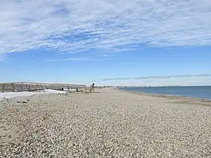 Duxbury Beach is a barrier beach in the town of Duxbury, Massachusetts. It is six miles long and is accessed by the Powder Point Bridge from Duxbury, or Gurnet Road from Marshfield. Since 1975, approximately 4.5 miles of the beach is owned by Duxbury Beach Reservation, Inc,[1][2] which annually leases a substantial portion of the beach—excepting the Duxbury Beach Park area—to the town of Duxbury. Under this arrangement, the town issues beach vehicle permits, provides police protection, and provides conservation officers to patrol the beach in all seasons of the year.[3]