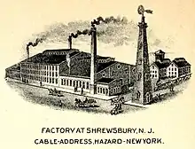 It was in Shrewsbury, NJ that Hazard and Company purchased a 165-acre (0.67 km2) tract on which it built "extensive factories, including handsome offices and one of the best-equipped laboratories in this country." The firm also grew many of its own agricultural produce on this Shrewsbury tract.[3]