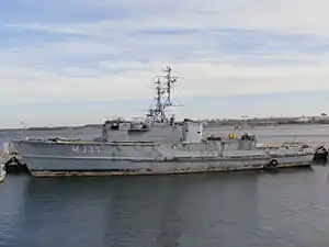 EML Wambola (M311) was built in West Germany, in a Burmester shipyard in Bremen. The vessel was launched on 11 March 1959 and she entered service in the same year. The ship's name comes from the city of Cuxhaven in Germany. Originally Cuxhaven was a minesweeper but was transformed into a minehunter in late 1970s. The German Navy decommissioned Cuxhaven and one of her twin sisters Lindau on 9 October 2003 and gave the vessels to the Estonian Navy to operate. On the ceremony the vessel received an Estonian name Wambola.[1] Estonian Navy decommissioned Wambola on 26 March 2009.