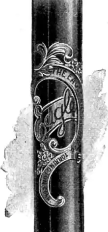 At one time, Eagle had a capacity to manufacture 20,000 to 30,000 bicycles annually.[1] The company promoted some of their unique features such as aluminum rims and inner tube tires, which are easily detached and repaired.[2] They were one of the earliest to use cold-swaging on the frame joints. Eagle built high wheels including a 48", 50" and 52" inch high wheel in the 1880s. They weighed 35 to 50 pounds and cost $40 to $150.
