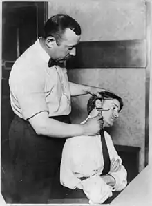 Ear print analysis is used as a means of forensic identification intended as an identification tool similar to fingerprinting. An ear print is a two-dimensional reproduction of the parts of the outer ear that have touched a specific surface (most commonly the helix, antihelix, tragus and antitragus).[1] Ear prints and their use for identification were first discovered by Fritz Hirschi in 1965.[2] Fritz Hirschi was the first to identify a criminal using this method, in Switzerland in 1965[3] and ear print analysis has also been successfully used to solve crimes in the UK and the Netherlands.[4] In addition to identification, the height of an ear imprint at a crime scene may also provide investigators with information regarding the stature of the perpetrator.[5]