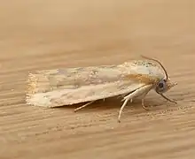 Earias perhuegeli, the rough bollworm, is a moth of the family Nolidae. The species was first described by Jeremy Daniel Holloway in 1977. It is found in the northern two-thirds of Australia and several islands in the South Pacific.