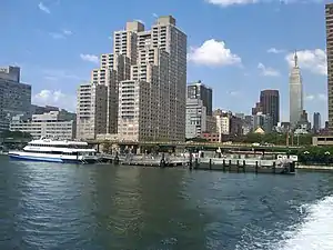 The East 34th Street Ferry Landing provides slips to ferries and excursion boats in the Port of New York and New Jersey. It is located on the East River in New York City east of the FDR Drive just north of East 34th Street in Midtown Manhattan. The facility, owned by the city,[1] received Federal Highway Administration funding for improvements for docking facilities and upgrading the adjacent East River Greenway in 2008.[2] A new terminal was built and completed in 2012.[3]