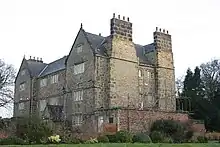 East Denton Hall, dating from 1622,[1] was in the 18th century the seat of the prominent Montagu family. Elizabeth Montagu, the cultural critic and founder of the Blue Stockings Society, spent some time there. To the east of the Hall a waggonway led from the Caroline Pit to the coal staithes by the river Tyne in Scotswood.[2] Bishop's House, East Denton Hall, to give it its formal name, is now the official residence of the Roman Catholic Bishop of Hexham and Newcastle.