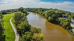 In the river's early days, it was known as the Devil River. The Devil River played an important part in the European settlement of Brown County.[3] When Brown County was first surveyed in 1820, the Devil River formed part of the boundary of the surveyed area.[4] Second Lieutenant Jefferson Davis was stationed at nearby Fort Winnebago from 1829 to 1831.[5] He went deer hunting on a boat on the Devil River and nearly drowned before his companion saved him.[6][7] The settlement of Navarino was established on the river's banks in 1830.[8] During the Black Hawk War of 1832, the river formed one of the defensive boundaries of American forces in Brown County.[9] In the early 1840s, it is alleged that Colonel Zachary Taylor tried to cross the Devil River during a spring flood. The rushing water swept him off his horse, and he was rescued by his fellow soldiers.[3]