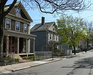In the 1840s and 1850s extensive development began with an urban model that called for narrow streets and small residential lots. The buildings from this era provide a distinguished collection of Greek Revival and Italianate style houses that are important to East Somerville. Many examples of this architecture can be found on upper Mt. Vernon, Mt. Pleasant and Perkins Street. Pearl Street was developed in the 1870s and 1880s as a grand boulevard on the ridge overlooking Boston, with large single family homes that have since been subdivided.[4]